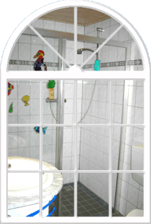 Das Bad bietet mit einer großen, begehbaren Dusche auch Platz genug um mit mehreren Personen zu duschen.